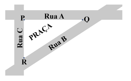 B e C, assim como a praça triangular, com vértices P, Q e R, que