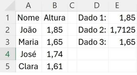 I. O valor da célula E1, que representa a média da altura