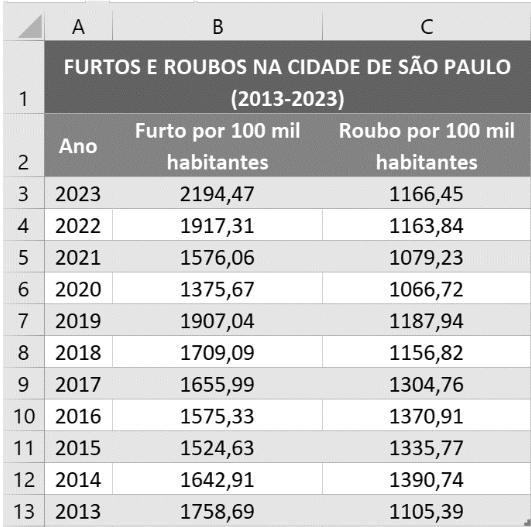 a planilha a seguir: