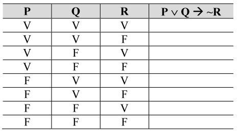 conectivo “ou”, e ~R a negação da proposição R. Com base nessas
