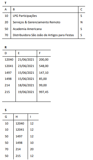 Assinale o conjunto de linhas que corresponde ao resultado